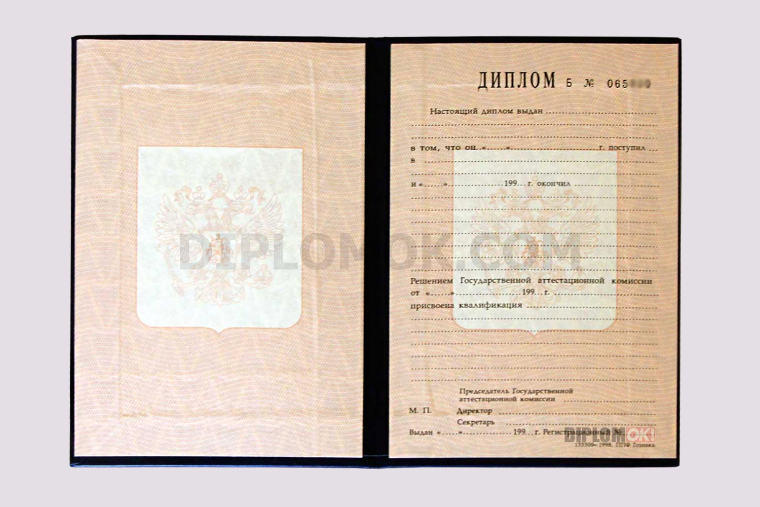 Диплом 1995-2006 года любого училища России, заполненный по всем стандартам, заверенный печатью нужного ПТУ и подписью его руководителя, секретаря и председателя аттестационной комиссии.