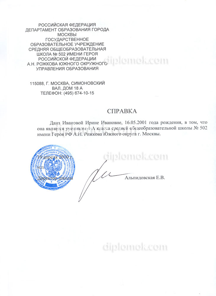 Хоть справка и не имеет установленного государственного образца, но изготавливается в полном соответствии со стандартами учебного заведения, выбранного Вами. Сделать это нам позволяет, собранная за 6 лет работы, информационно-техническая база, включающая в себя большинство ВУЗов, техникумов, колледжей, училищ и школ страны. Поэтому купить справку об обучении, сотрудничая с нами — значит быть уверенным в том, что получите документ, который не вызовет никаких подозрений и нареканий у представителя организации, куда Вы хотите эту справку предъявить.